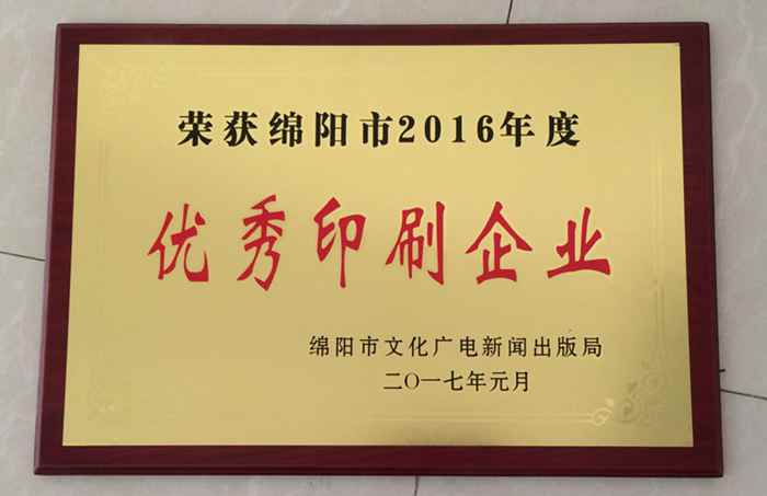 2016年度市級優秀印刷企業
